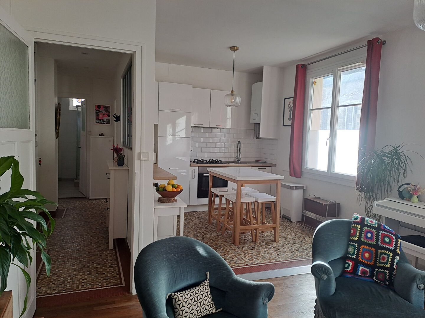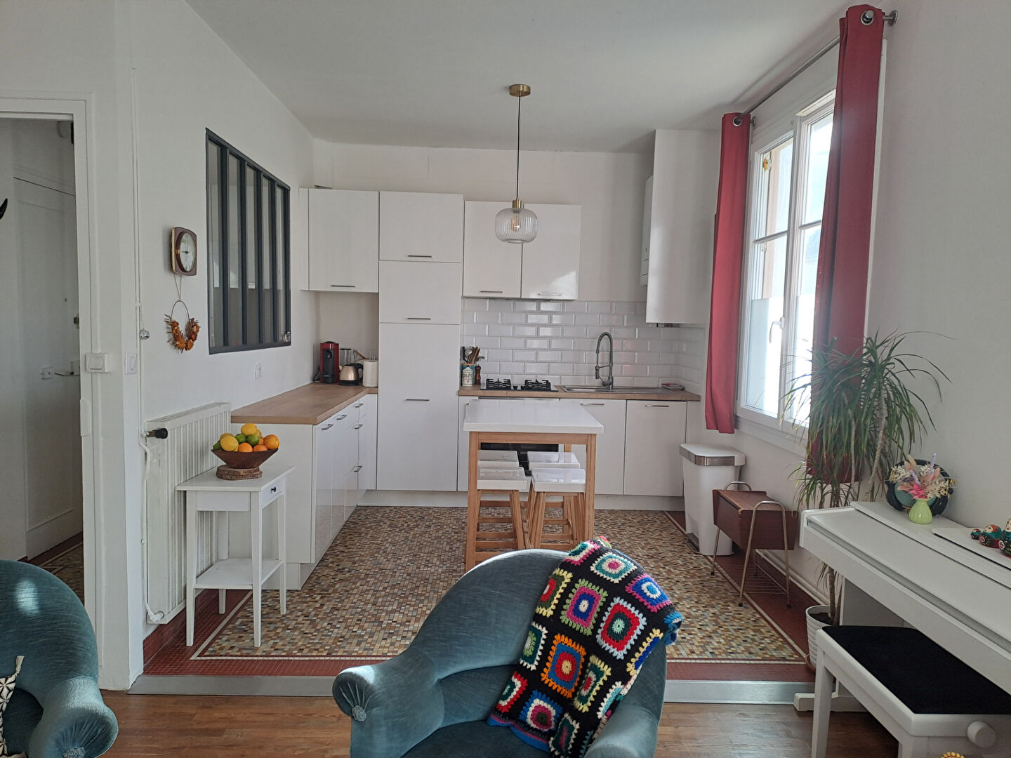 Au rez de chaussée surélevé d'un petit immeuble dans une rue calme et aujourd 'hui en stationnement gratuit, il comprend une entrée avec placards, une cuisine aménagée avec jolie verrière ouverte sur le séjour, offrant un bel espace de vie. Une chambre confortable. Une salle d'eau avec WC.