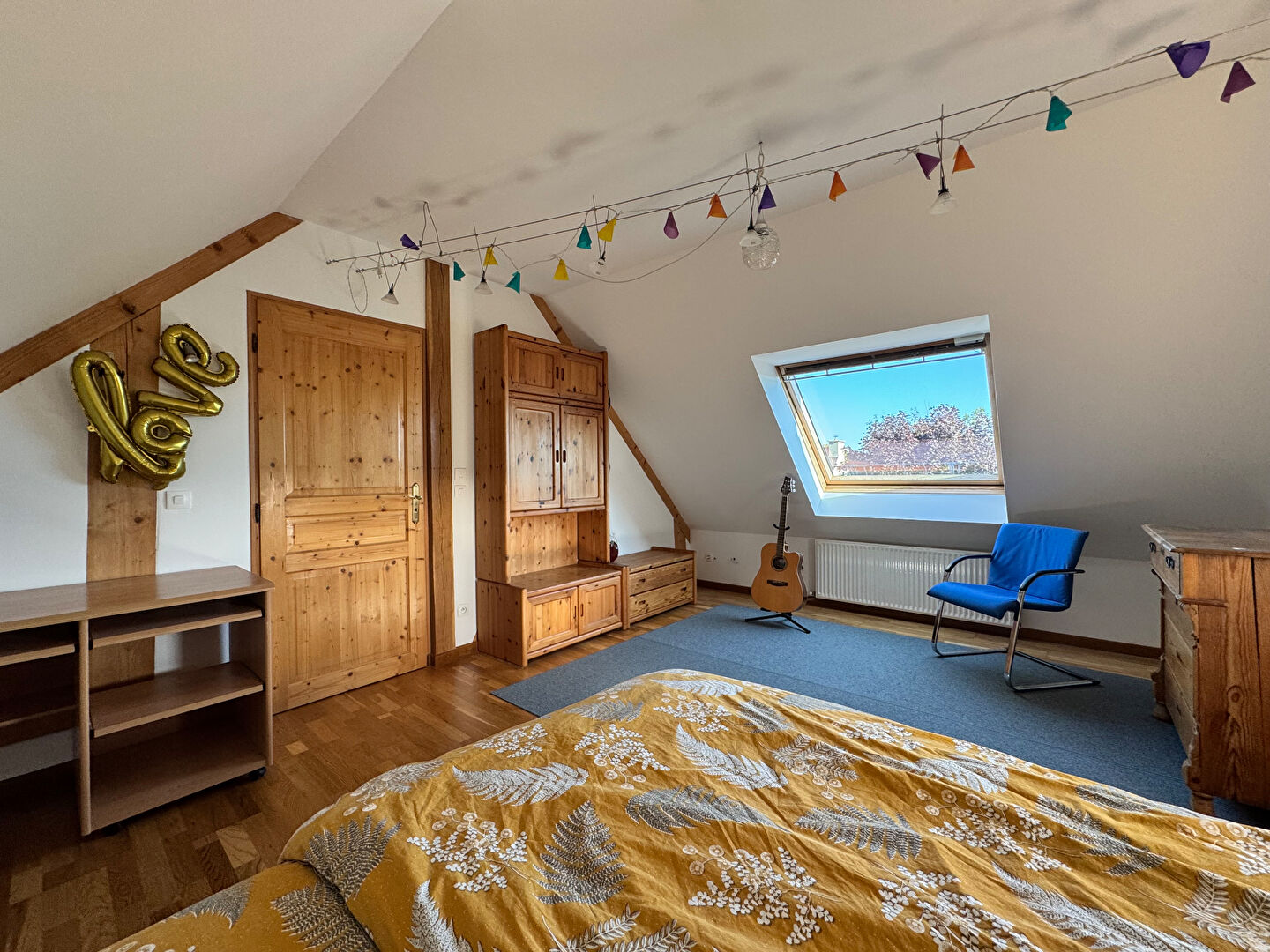 Les + de la demeure : grandes menuiseries extérieures mixtes alu/bois, hauteur sous plafond de 2,67m au rdc donnant une nette impression de volume, halls et chambres en parquet massif, conduit de cheminée présent dans le salon.