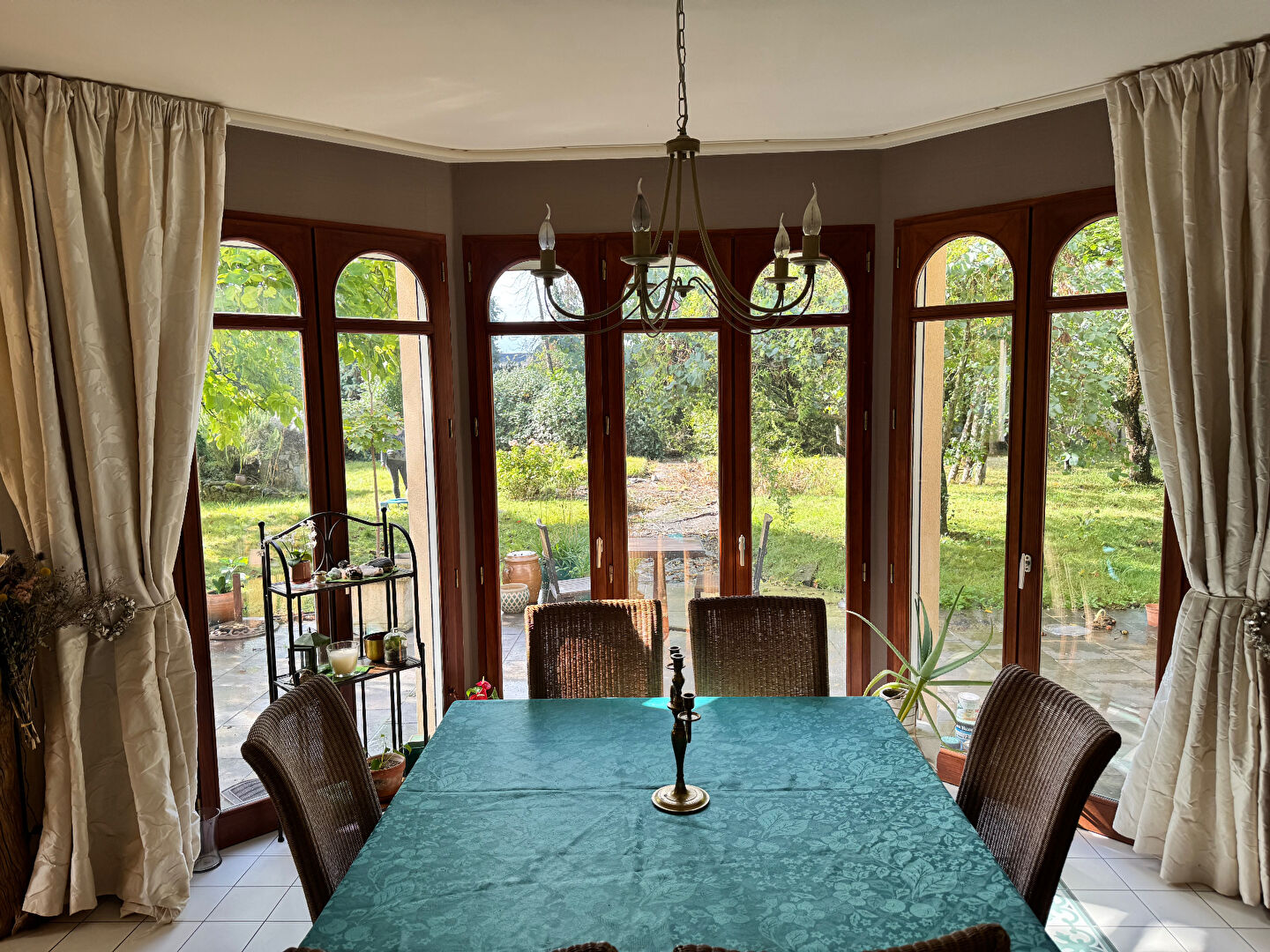 Grand hall d'entrée, cuisine aménagée et équipée (+ arrière-cuisine), séjour, salon, suite parentale, WC indépendant.