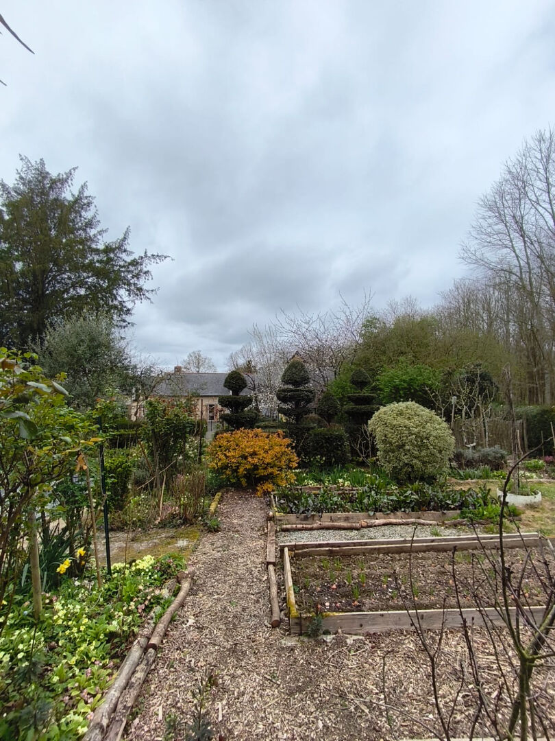 En extérieur : une ancienne étable en très bon état sur 2 niveaux pouvant se transformer selon vos projets avec un garage ouvert accolé, une grande cour goudronnée puis un très grand potager arboré (fruitiers) et fleuri avec un puit.