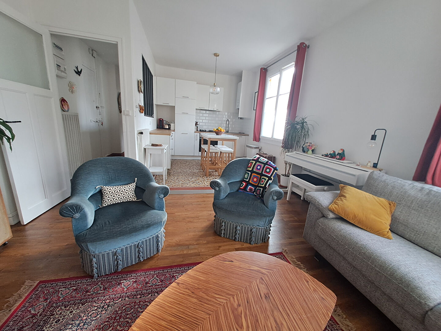 Au rez de chaussée surélevé d'un petit immeuble dans une rue calme et aujourd 'hui en stationnement gratuit, il comprend une entrée avec placards, une cuisine aménagée avec jolie verrière ouverte sur le séjour, offrant un bel espace de vie. Une chambre confortable. Une salle d'eau avec WC.