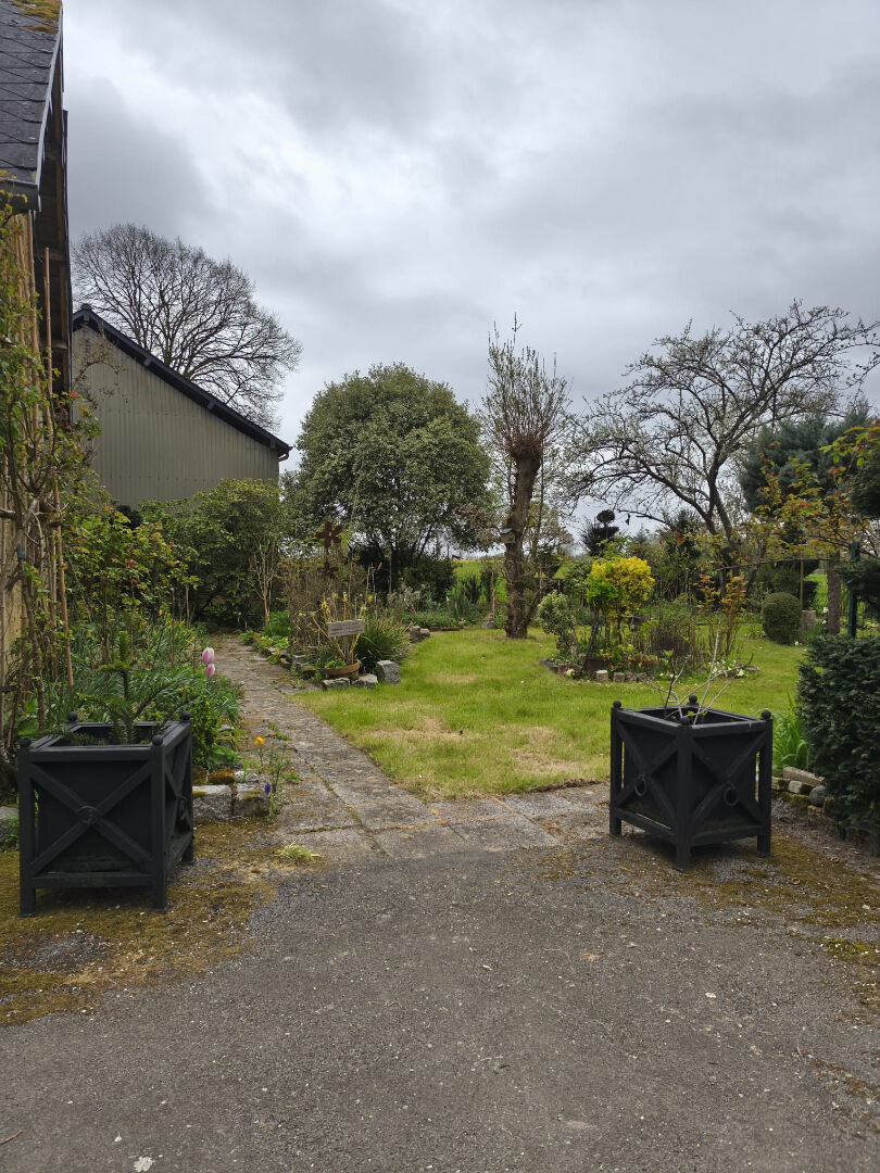 En extérieur : une ancienne étable en très bon état sur 2 niveaux pouvant se transformer selon vos projets avec un garage ouvert accolé, une grande cour goudronnée puis un très grand potager arboré (fruitiers) et fleuri avec un puit.