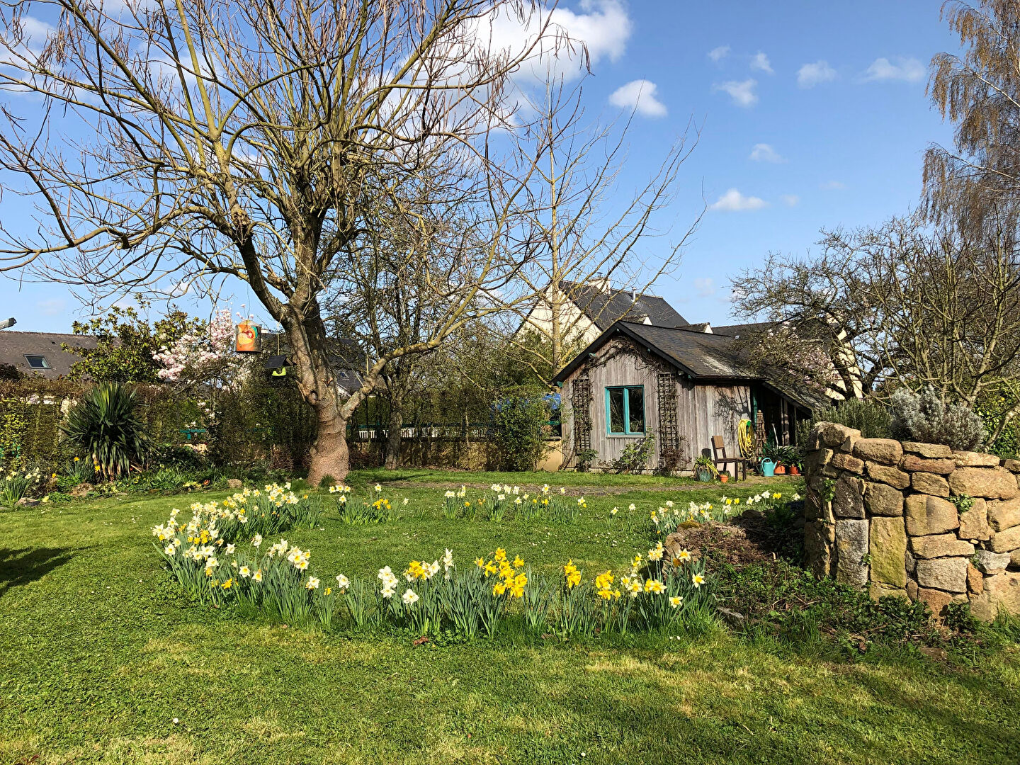 Un extérieur complétement clos : grand cabanon de jardin (couverture ardoise naturelle) avec eau et électricité, belle terrasse carrelée exposée Sud/Sud-Ouest, pelouse arborée, massifs fleuris, grande entrée/cour bitumée avec portail.